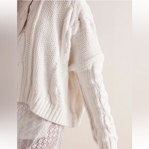 Free People White Cable Knit Sweater
