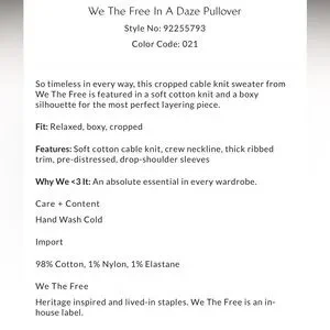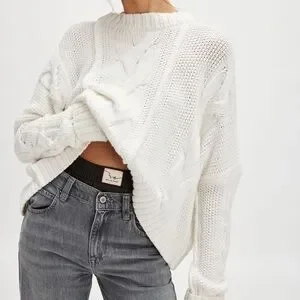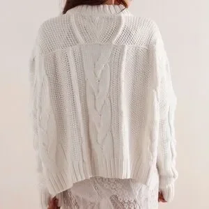 Cozy cable knit design. Soft and stylish. Perfect for layering.