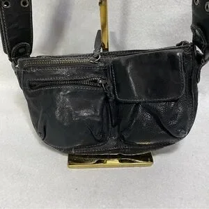 Free People Wade Leather Sling Black Crossbody Festival Bag
