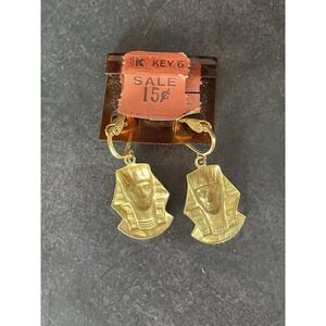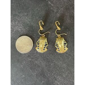 Vintage Gold Tone Blue Accent King Tut Earrings Clip On