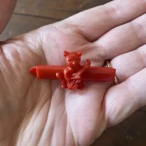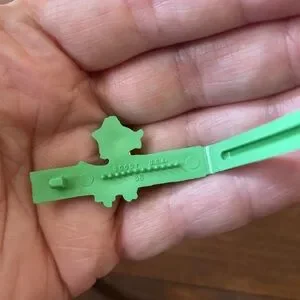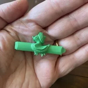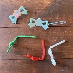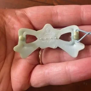 2 plastic Goody Mother Goose nursery rhyme clips - one read featuring a fiddler cat and one green featuring a baby goose