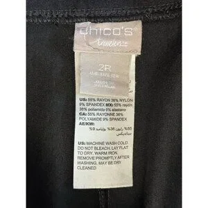 This listing is for one Chico's Travelers Womens Cropped Pants~Size 2R (L/12)~Black Stretch Bottoms that are in good, pre-owned condition. There are a couple of light spots on the pants, but overall, they are in good shape!! Rayon/Nylon/Spandex. Machine wash.
