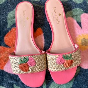 Kate Spade Pink Raffia Strawberry Embroidered Sandals