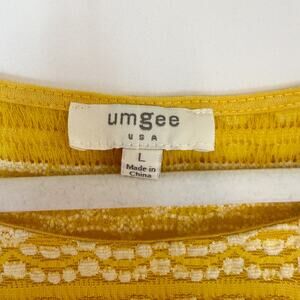 Umgee Crochet Lace Ruffle Top Short Sleeves Marigold Yellow Women's Large