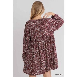 Umgee Long Sleeve Animal Print Babydoll Dress