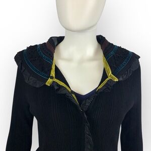 Etro Black & Teal Ruffled Cardigan Soft Angora Lace & Ribbon Detail M/44/8