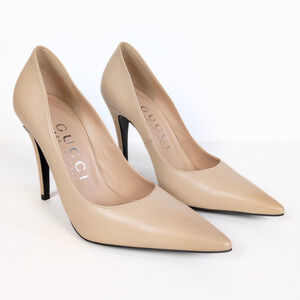 GUCCI Anita Pointed Toe Pumps 105mm Malaga Kid Leather in Powder Women's 37.5