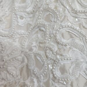 Beautiful shantung silk dress from 1996. The beading is breathtaking, and there is a gorgeous detachable train. It's a timeless silhouette that captures the essence of romance and glamor. Perfect for the modern-day bride that loves classic pieces. There is a beautiful bolero jacket they can be worn if needed. This dress has a sophisticated style that will make your day absolutely fabulous.