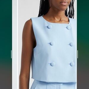 New with tag. Fabric-covered buttons add to the sophisticated appeal of this sleeveless top designed in a modern boxy, cropped silhouette.