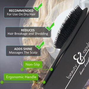 The BEAUTY & OPULENCE Boar Bristle Hair Brush easily glides through hair, smoothing down fly-aways With a CLASSIC BLACK CUSHION, soft matte-finished handle, and the perfect mixture of nylon and pure boar bristles, this is the must have hair styling tool for all hair types.