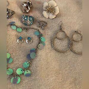 I like the blue rhinestone ring, the white flower ring and the butterfly ring and the blue bracelet!!