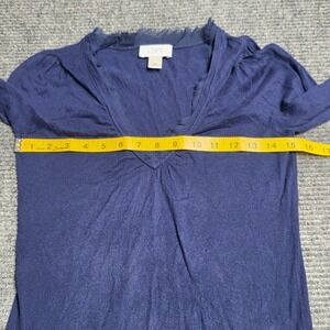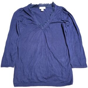 Ann Taylor LOFT V-Neck 3/4 Sleeve Sweater Women's Size XS Navy Blue Chiffon Trim