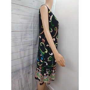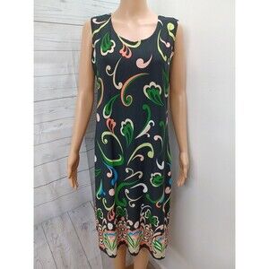 CSC Womens Black Green Dress M USA Made Vacation Travel Comfort Stretch Artsy