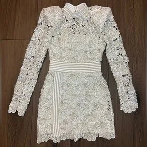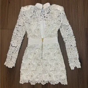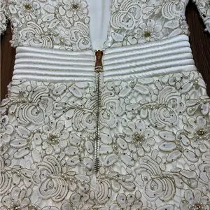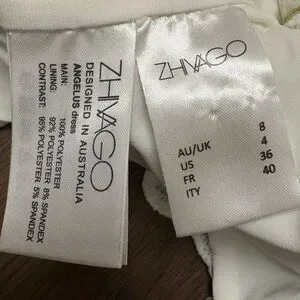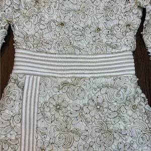 Stunning backless lace dress by Zhivago. Features intricate lace with gold and white beading. Perfect for any bridal event! I wore it only once to dinner the night before my wedding (see second photo). It’s in pristine condition and fits a US Size 4. I hope it makes another bride very happy! 🤍