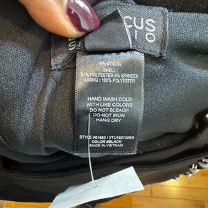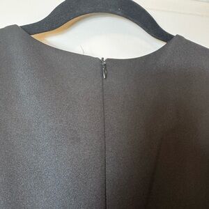 Chic black midi dress with gold button details. Sleeveless design. Perfect for elegant occasions.