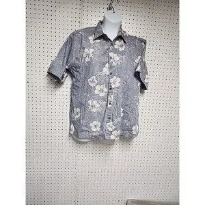 Cooke Street Reverse Fabric Aloha Hawaiian floral Shirt Mens Blue White SZ XL