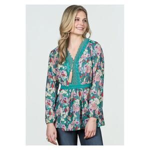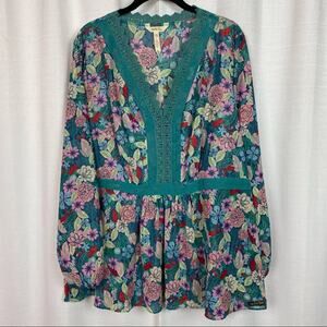 Matilda Jane Green Floral Sheer Large Kookaburra Blouse Sz.XXL