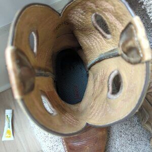 The Ariat Heritage Roughstock Square Toe Leather Boots in brown, men's size 10.5, offer a classic Western style with a square toe design and mid-calf shaft. Made with leather material, these boots feature a pull-on closure and leather lining and insole for comfort. With a durable leather outsole and D width, these boots are perfect for casual occasions throughout the year, adding a touch of Western flair to any outfit. The Ariat Heritage Roughstock boots are a reliable and stylish choice for men looking for high-quality leather footwear. They are in good condition with some wear, see pictures.