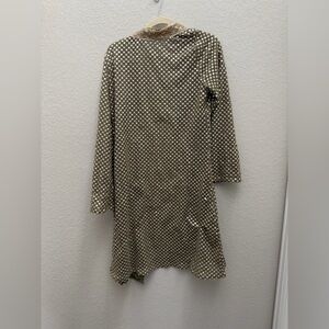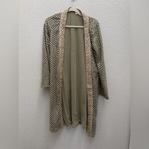 Joyfolie Green Gold Embellished Longline Cardigan Small Boho Luxe Layering Piece