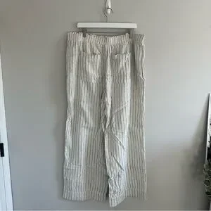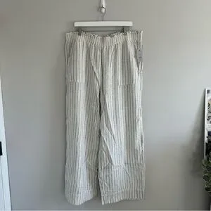Time And Tru White Black Striped Wide Leg Linen Pant Size XL NWT
