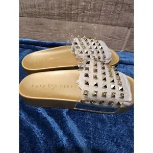 Katy Perry Gold Stud Clear Slides Slippers Women 6 36