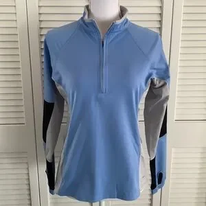 A performance base layer half zip pullover from outdoor adventure retailer, EMS. This color block blue, gray and black top is ready for your activity, or if you are out running errands. Eastern Mountain Sports gear is top quality and durable. Gently worn and in great condition. Women’s size medium.