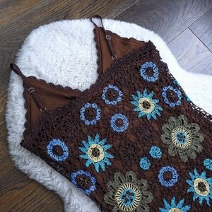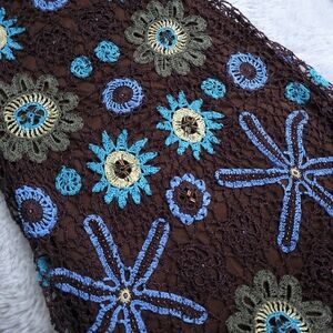 Absolutely stunning and unique in nature with its intricatly Crochet floral and undersea Siren song with beaded centers and an incredible sharkbait fairy hem.