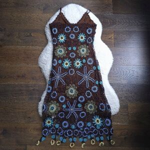 Vintage Y2K Siren Mermaidcore Fairy Beaded Crochet Midi Dress