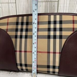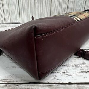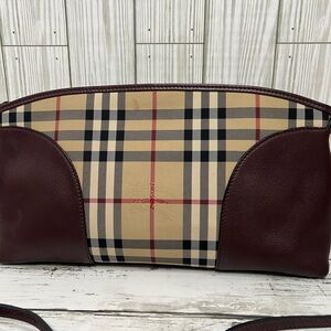 Burberry Nova Check Crossbody Clutch Bag Plaid Burgundy Leather Trim