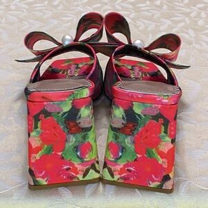 🆕 Betsey Johnson Heeled Sandals Womens size 11 Floral Big Bow Slip On Heels NEW