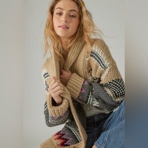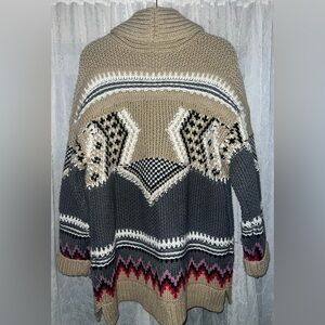 Lucky Brand Tribal Aztec Print Cardigan Chunky Sweater Wool Blend Women’s Large