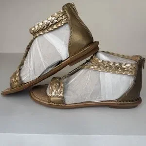 b.o.c. Born O. Concept Womens Braided Flats-Sandals-Shoes Gold Tan Gladiator Sz7