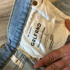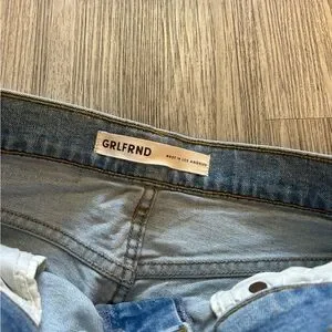 Stylish designer high rise skinny jeans by GRLFRND. Light blue color. Sleek and trendy design. Excellent condition.