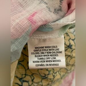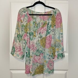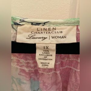 Linen Charter Club Floral Linen Peasant Blouse Bell Sleeves Tie Neck IX