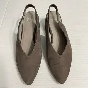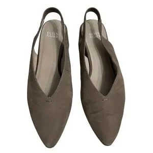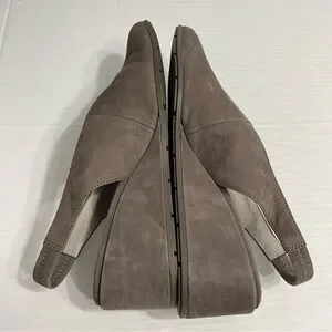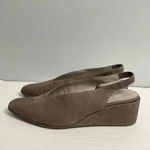 Eileen Fisher Devi Tumbled Nubuck Leather Wedge Slingback. Taupe