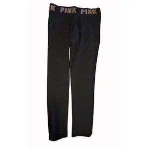Victoria's Secret "PINK" Yoga Pants; Dark Gray w/Sequin Waistband - NEW! Size Lg