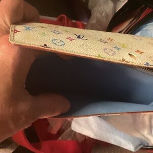 REHAB Louis Vuitton x Takashi murakami monogram Sarah wallet.wallet with vibrant monogram design. Features a cream base with colorful accents. Ideal for a touch of luxury.