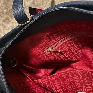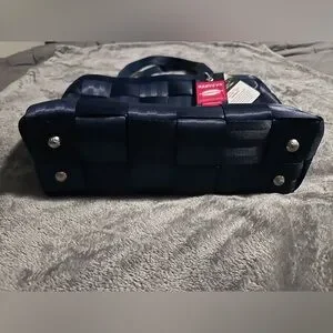 The Harveys Seatbelt Bags Large Tote includes a full zip-top closure to secure your belongings two seatbelt handles that fit comfortably over the shoulder and four protective metal feet to keep your bag clean and lifted off surfaces. The interior features burgundy Harveys monogrammed lining a zippered pocket, a d-ring to clip a click-n-go keychain and slip pockets to help keep you organized.