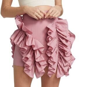Aknvas NWOT Eliz Ruffle Miniskirt Dust Rose Size 8 High Rise Voluminous Ruffles