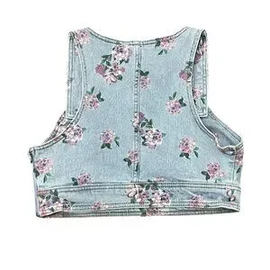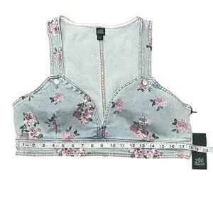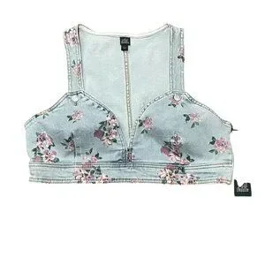 Wild Fable Women's Blue Denim Floral Women's Crop Vest Size: Large