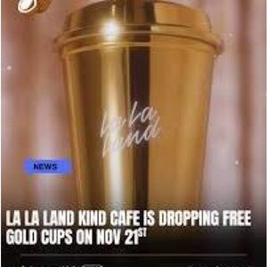 La la land kind cafe’s gold cup.