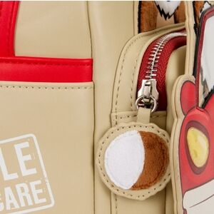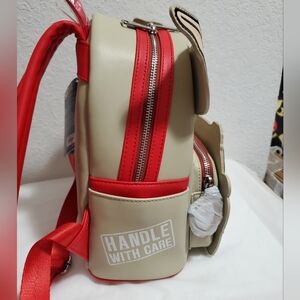 This mini backpack features Gizmo front and center with plush and embroidered details. Gizmo drives a car that doubles as the front pocket – and you know what's really cool? The headlights light up! You'll find "Handle with Care" written on one of the side pockets, and red straps bring the whole look together.