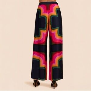 Trina Turk's Hansa pants feature a vibrant optical print and a flattering wide-leg silhouette.