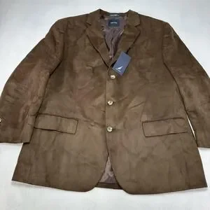 Nautica Sport Coat Mens 48R Brown Faux Suede Blazer Jacket Three Button Prep