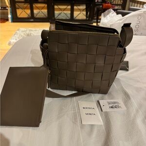 Bottega Veneta Taupe Bowling Cassette Bag, can be worn several ways , has a pouch , authenticity card and dust bag , like new , no callouts!