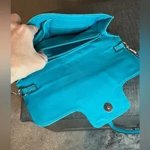 Featuring a luxurious crocodile-embossed texture in a vibrant turquoise/teal hue, this bag is the perfect blend of sophisticated structure and bold style.