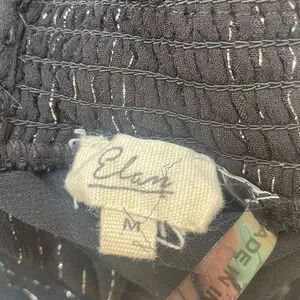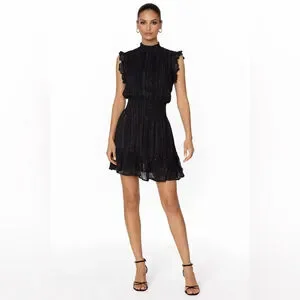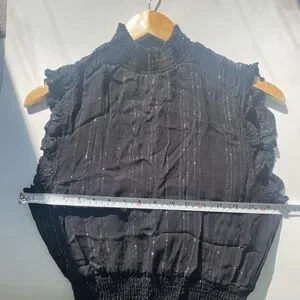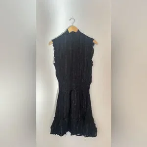 Elan Black Metallic Stripe Ruffle Mini Dress Smocked Waist Size M