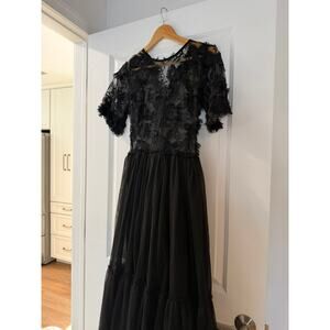 Notes: this is a gown made in Brazil. The top is made sheer so that it can be paired with any type of black body suit neckline you’d like underneath to make the gown versatile (i.e. plunging for one event, higher neck modest for another)