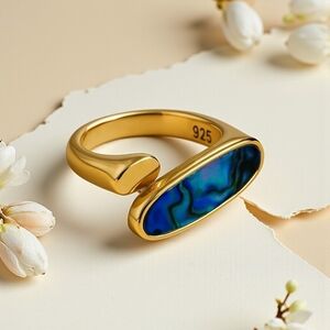 Bring a splash of ocean magic to your jewelry collection with this stunning adjustable abalone ring ๐โจ. Expertly crafted in S925 sterling silver with a luxurious 18K gold plating, this piece features a luminous abalone shell inlay that shimmers with iridescent blues and greens, making each ring truly one-of-a-kind. Its modern yet boho chic design makes it perfect for everyday wear or as a standout accessory for special occasions. Whether worn solo or stacked with other favorites, this adjustable ring promises timeless beauty and comfort.