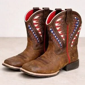 Ariat Kids Quickdraw VentTEK Patriotic American Flag Western Boots Size 4